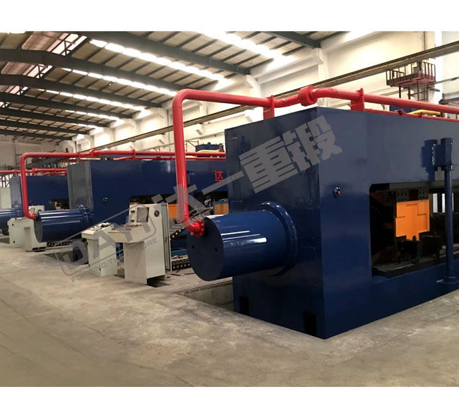 汽車車橋擠壓生產(chǎn)線是我公司針對(duì)掛車車橋生產(chǎn)工藝自主開發(fā)的新型設(shè)備,具有自主知識(shí)產(chǎn)權(quán)。該生產(chǎn)線包含中頻加熱爐、送料機(jī)械手、車橋擠壓機(jī)等部分,將原車橋摩擦焊接、單邊旋壓等工藝替換為雙頭熱擠壓工藝,可一次性擠壓出高質(zhì)量車軸,有效地提高了生產(chǎn)效率、降低了生產(chǎn)能耗。