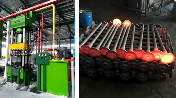預(yù)墩機(jī)、擺輾鍛造機(jī)是我公司針對汽車半軸相關(guān)產(chǎn)品獨(dú)特開發(fā)的特種成形設(shè)備,是國內(nèi)先進(jìn)的節(jié)能、節(jié)材、少無切削及機(jī)電一體化的高科技?jí)毫Τ尚卧O(shè)備。該設(shè)備具有投資小、耗能低、易維修、操作簡單等優(yōu)點(diǎn),輾壓力僅為常規(guī)鍛造的1/15-1/10,較普通鍛錘類設(shè)備具有效率高(提高3倍以上)、加工零件精度高、節(jié)約原材料、噪音低、振動(dòng)小等優(yōu)點(diǎn)。自擺輾鍛造機(jī)在我國正式生產(chǎn)和推廣以來,現(xiàn)已為汽車半軸等生產(chǎn)企業(yè)和必備鍛造制坯設(shè)備,并為我國汽車半軸的鍛造加工做出了巨大的貢獻(xiàn)。